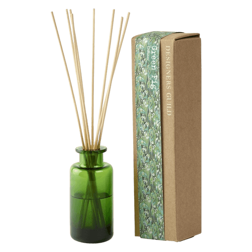 The divine scent of the first fig harvest with notes of cassis and delicate rose flower, enhanced with the fresh green fragrance of tomato leaf, zesty lemon and dewy moss. Alcohol-free 100ml diffuser formulation with 8 natural reed sticks in a hand-blown emerald green glass bottle.